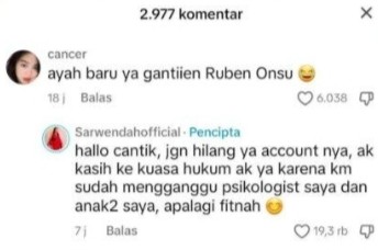 Salah satu netizen bahkan berkomentar bahwa Betrand akan menggantikan posisi suami Sarwendah, Ruben Onsu.