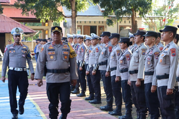 Wakapolres Manggarai Barat, Kompol Libartino Silaban, S.H., S.I.K, Pimpin Apel Gelar Pasukan Operasi Patuh Turangga 2024 di Labuan Bajo. (foto : isth).